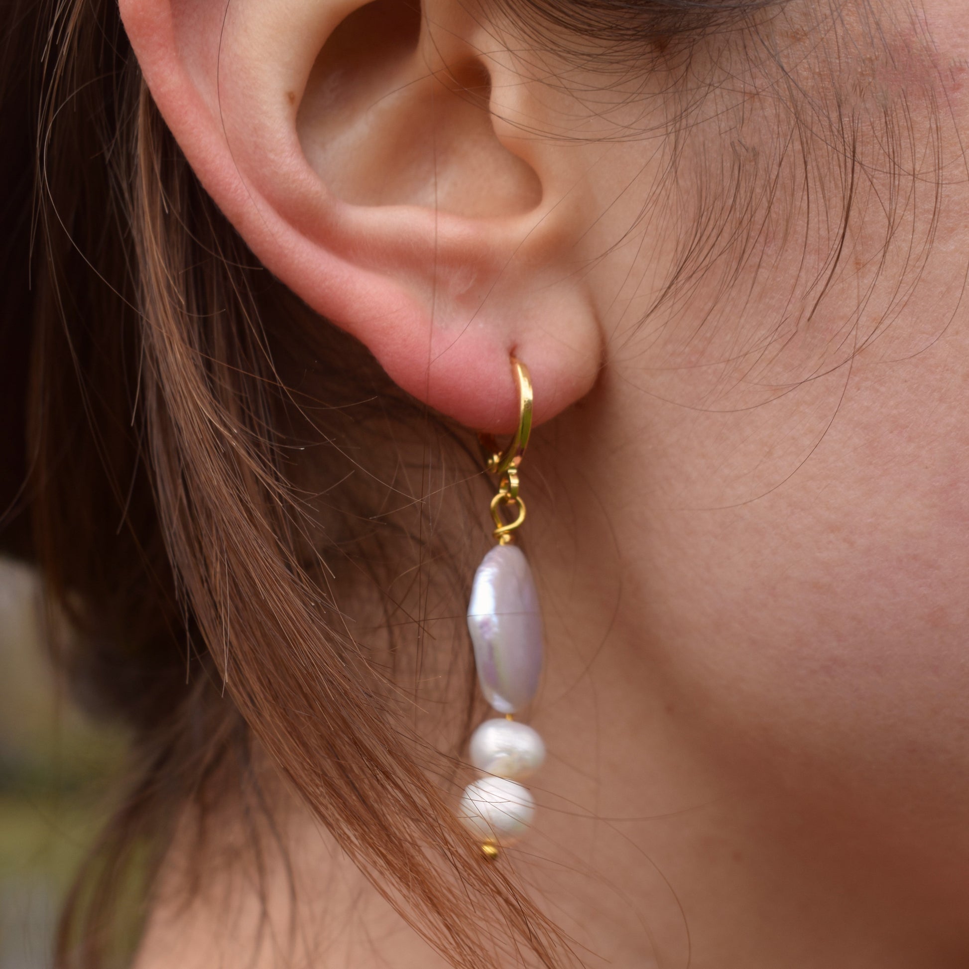 - Product Materials: Gold plated brass ear huggies, a selection of freshwater pearls
