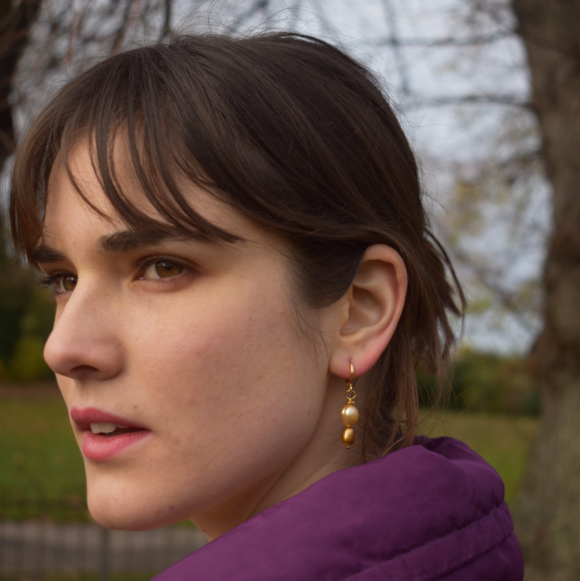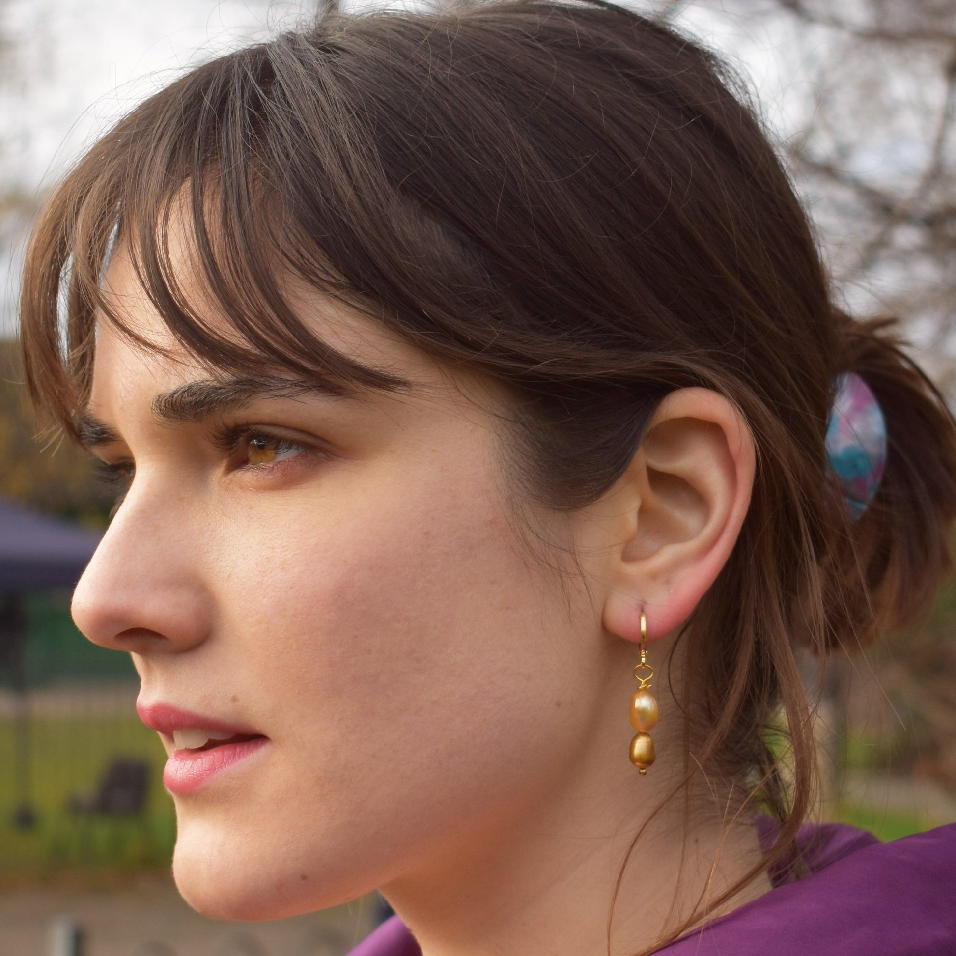 Dual Gold Tone Freshwater Pearl Earrings | by Ifemi Jewels