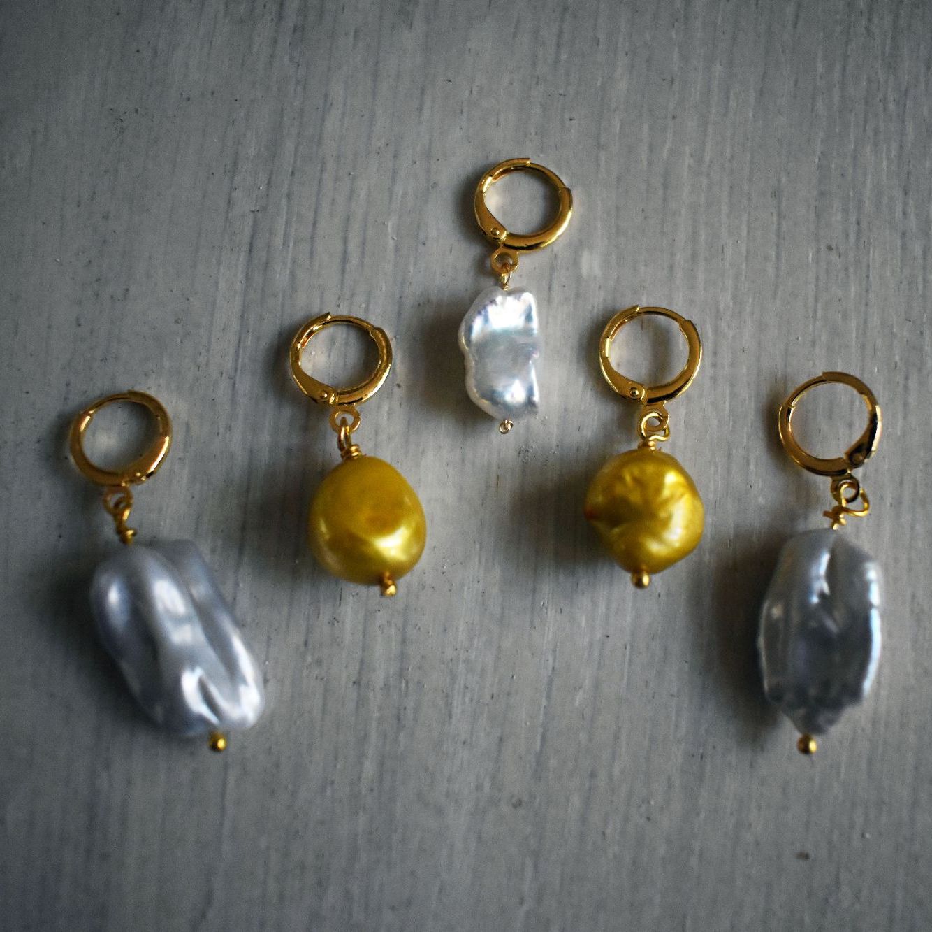 - Product Materials: Gold plated brass ear huggies, a selection of freshwater pearls