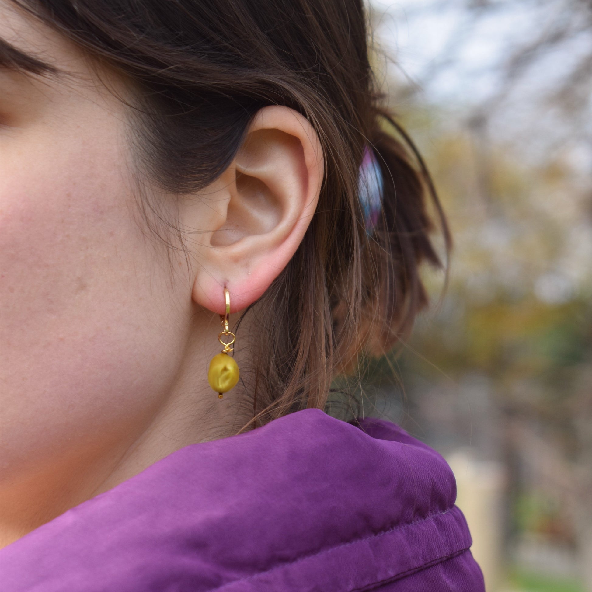Gold freshwater pearl huggie hoop earrings | by Ifemi Jewels