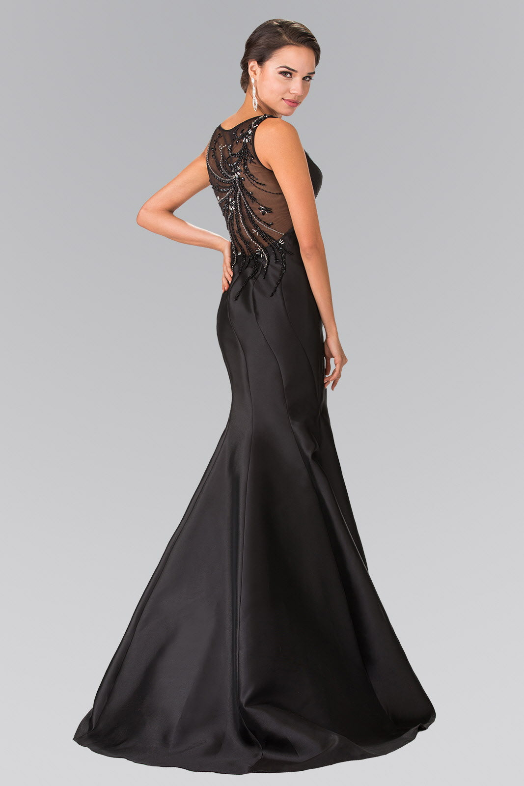 Trumpet Style Mikado Long Dress Accented with Beads on Straps